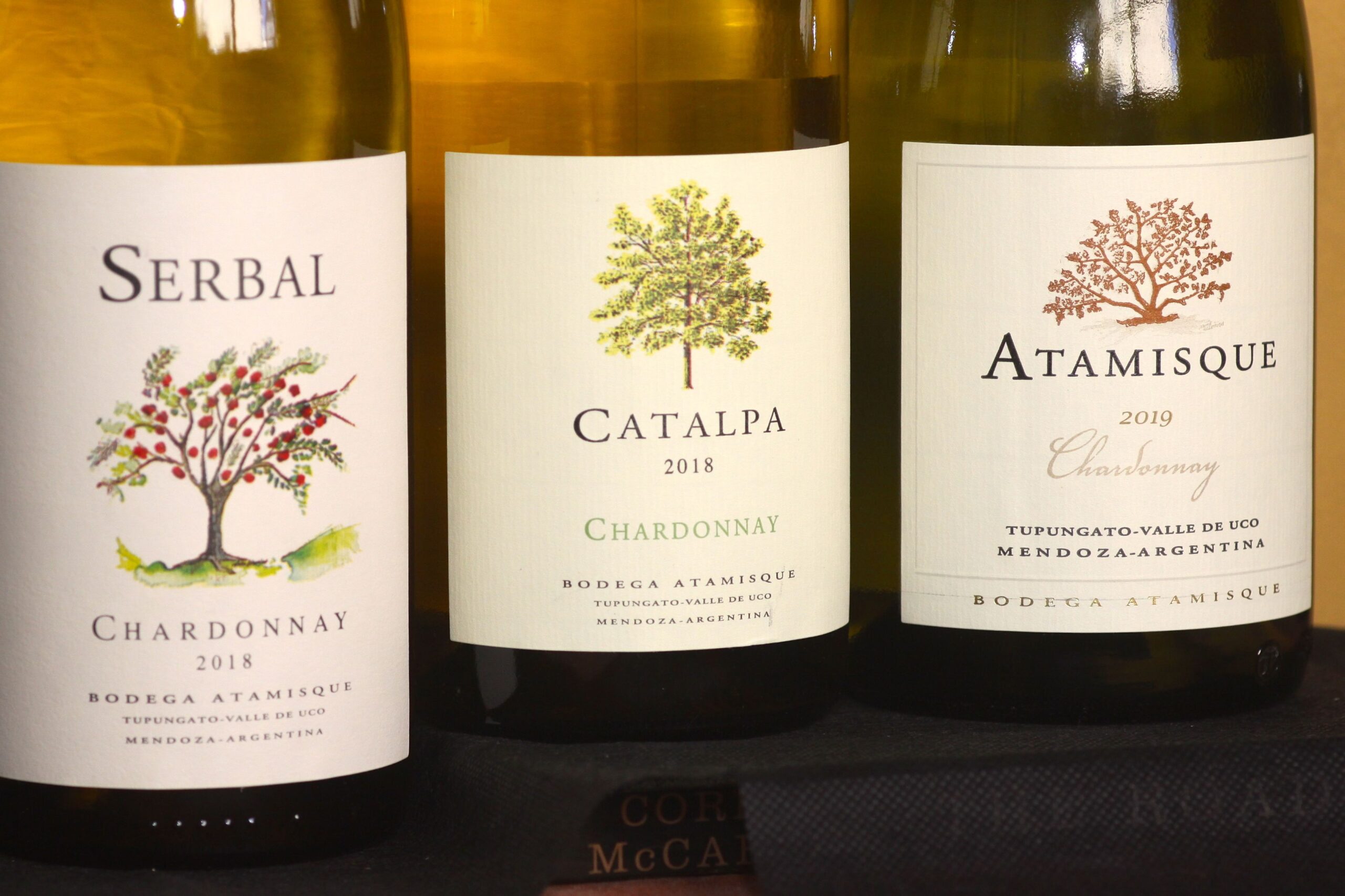 «San José, está al norte del Valle de Uco y es uno de sus distritos más altos ranqueando entre los 1300 y 1400 metros de cota. Esto nos brinda condiciones agroclimáticas muy buenas, especialmente para elaborar cepajes blancos. Allí las temperaturas de vegetación son las más bajas del área y eso nos permite tener una madurez prolongada y valores de acidez natural muy útiles a la hora de mantener la vivacidad y frescura de nuestros vinos. Aunque la finca tenía algo de viña era eminentemente frutícola y la idea del fundador fue plantear tanto los viñedos como la propia bodega siguiendo los principios de la enología para elaborar grandes vinos con un destino fundamentalmente pensado para la exportación. Al cabo de 2008 comenzamos nuestra operación comercial y a partir de entonces conseguimos presencia en 30 países además de empezar a crecer también en el mercado interno. En este momento estamos produciendo en unas 130 hectáreas. En cuanto al Chardonnay, pensemos que el primer vino insignia nuestro fue justamente un Catalpa de esa cepa, remanente de una primera implantación en la finca de alrededor de los 80. Eso, más mis propias experiencias en Borgoña y Oregon, acabaron determinando una relación especial de nuestra bodega con este varietal. Como habrás visto tenemos tres versiones, cada una con un distinto tipo de intervención de la madera. Por empezar el Serbal realizado totalmente sin madera, luego una línea mixta entre aportes con barrica y crianza en tanque de acero inoxidable y finalmente uno con una crianza de 11 meses en barricas nuevas compradas a un tonelero especializado de Borgoña.»